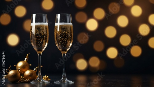 champagne and christmas decorations