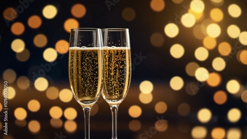 champagne glasses on the background of the christmas lights
