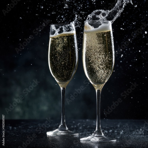 Champagne in glasses with splashing water