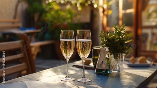 Champagne or wine on a decorated table to celebrate an event or holiday