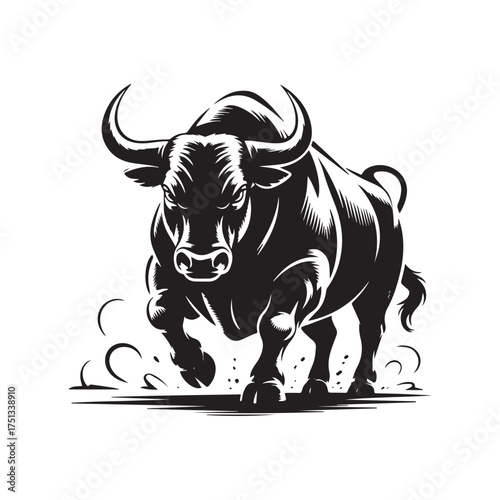 Charging Bull Logo graphic Icon Vector Design with a white background