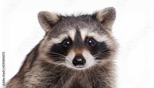 Charming and Humorous Portrait of a Raccoon in Closeup, Isolated on White Background A Captivating Display of Adorable Whimsy against a Pristine Backdrop
