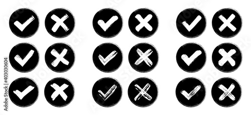 Check mark set. Green check mark and red cross icons. Vector illustration.