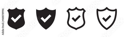 Checkmark icon set, approved symbol, checked checkbox mark, editable line stroke. Vector illustration