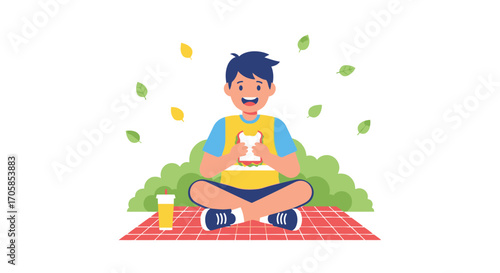 Cheerful Individual Enjoying Delicious Food During Relaxing Outdoor Activities