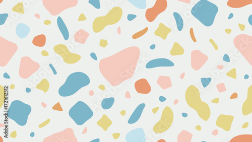 Cheerful Terrazzo Pattern with Pastel Colors and Organic Shapes on White seamless background