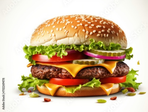 Cheese burger hamburger on white background.