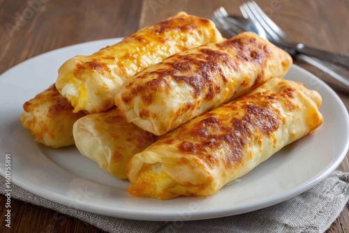 Cheese filled puff pastry on a white dish