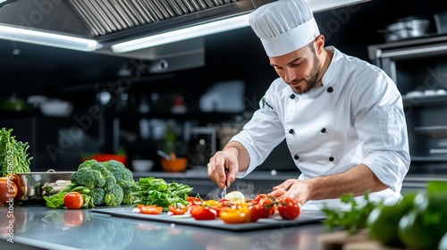 Chef Preparing Fresh Vegetables in Modern Kitchen