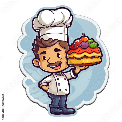 chef with cake, logo, restaurant, cafe, AI generated