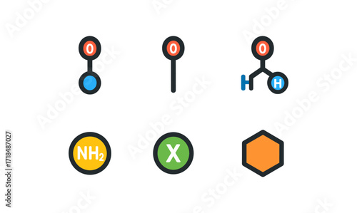 Chemistry icons set featuring molecular and structural symbols in flat design
