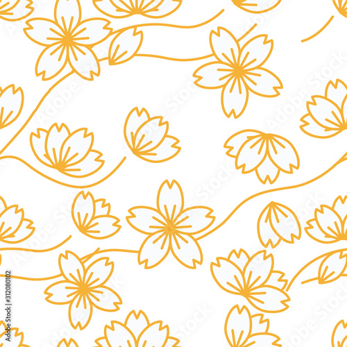 Cherry blossom branch and flowers vector art in minimal style. Seamless pattern. Chinese new year celebration decoration.