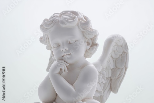 Cherub Angel Statue with Hand on Chin, Isolated on White Background, High Resolution