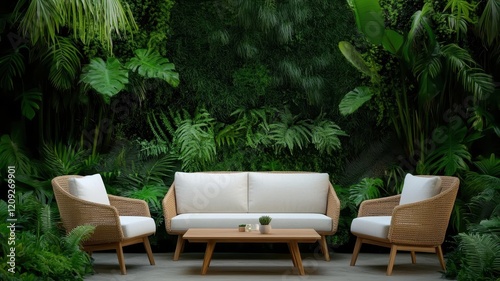 Chic outdoor seating area with a contemporary sofa, perfect for relaxation and social gatherings in style.