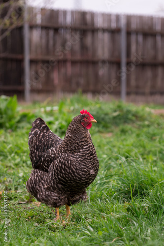 Chicken sitting in the yard farm