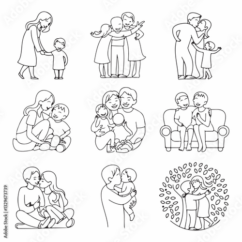 Child care line icon set. Breastfeeding, childhood, parent, pediatrician, toddler, mother, father, Family, icons set. Baby care, thin line design. Motherhood and fatherhood, linear symbols collection.
