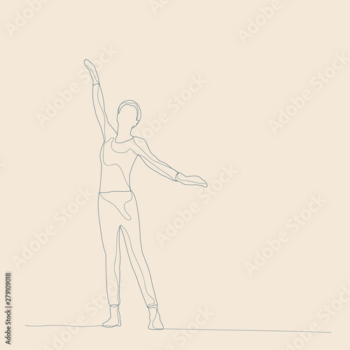child with lines, on a beige background, a girl is dancing