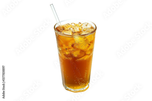 Chilled Glass of Iced Tea with a Straw Isolated on Transparent Background