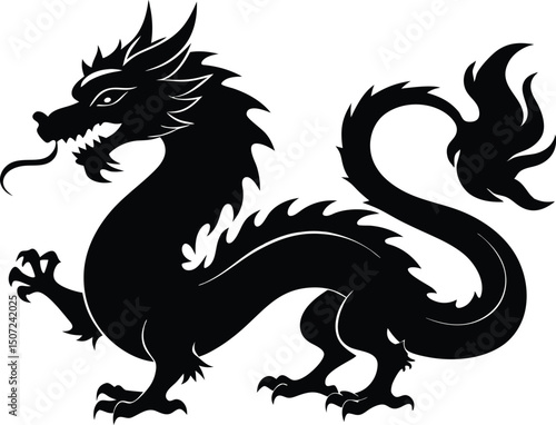 Chinese dragon silhouettes vector, Chinese dragon black silhouette flat symbol. vector illustration
