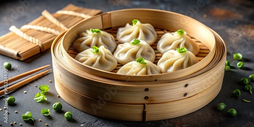 Chinese dumpling in a bamboo steamer box close up, bamboo steamer, healthy, traditional, appetizer, close-up, snack, Asian cuisine, vegetarian, delicacy, wrapper,Chinese, food, filled