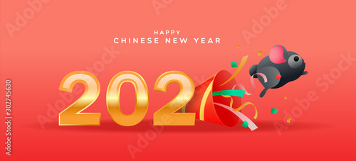 Chinese new year 2020 funny cute rat party cartoon