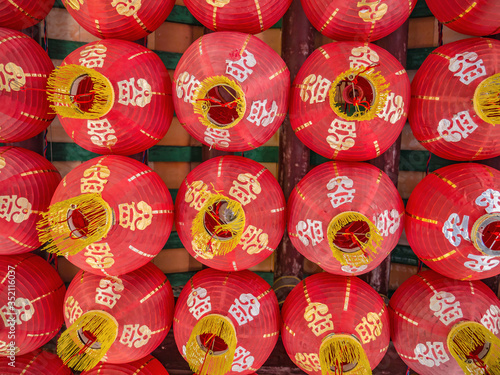 Chinese Red lantern on the ceiling in the Chinese Temple