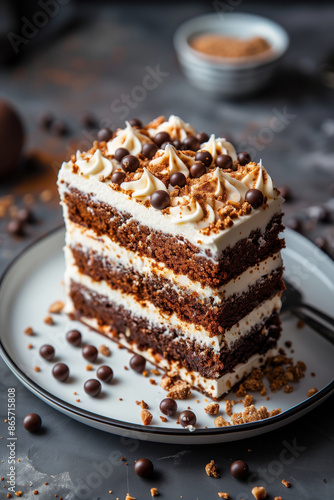Chocolate Cake With White Frosting and Chocolate Balls on White Plate