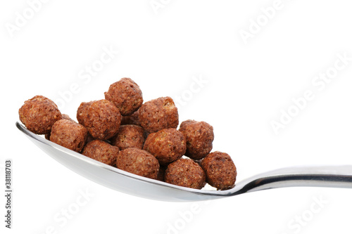 Chocolate cornflakes. A dry breakfast in a spoon.