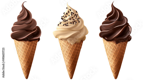 chocolate ice cream cone on white background