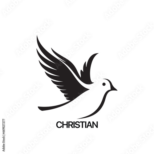 Christian Logo template with dove, pigeon. Black and white christian holy spirit symbol.