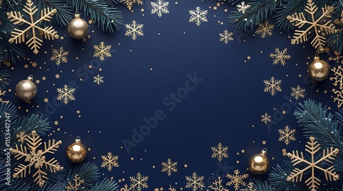 Christmas and New Year background with gold stars and shimmering glitter on a dark blue sky-like backdrop. Holiday banner, web designs, seasonal promotional material, festive greeting card