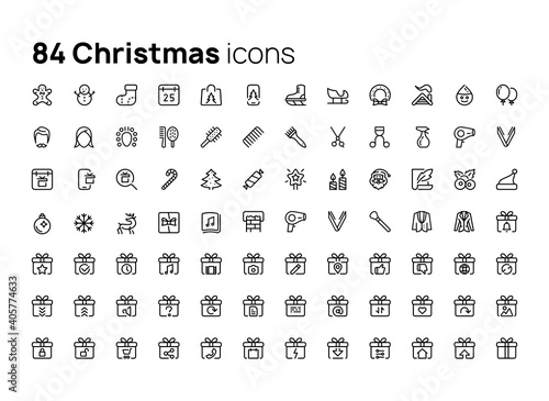 Christmas and new year. High quality concepts of linear minimalistic flat vector icons set for web sites, interface of mobile applications and design of printed products.