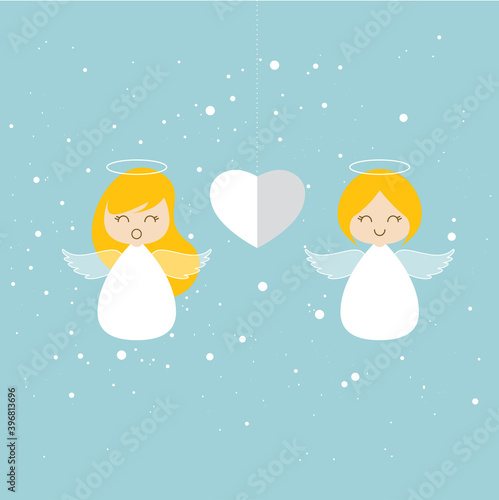 Christmas Angels cartoon illustration in flat style. Vector.