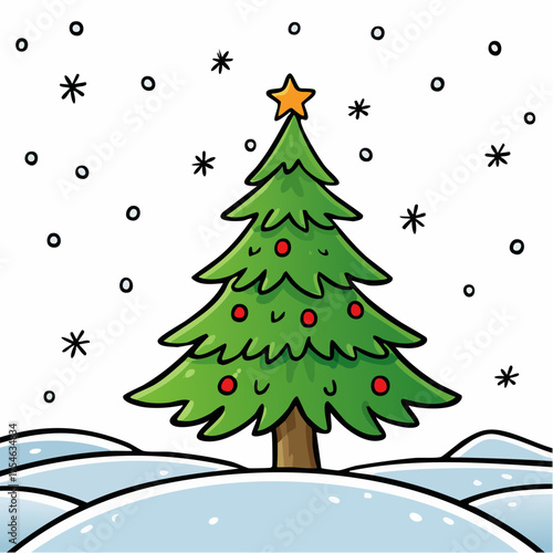 christmas background with fir tree and snow