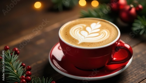 Christmas cappuccino; Santa latte art Warm holiday beverage , background, visual, hot beverage