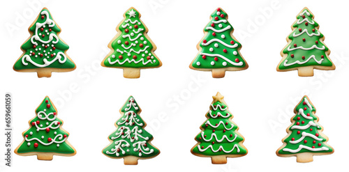 Christmas Collection: Cute Sugar Cookies in Tree Shape on transparent background, png - Generative AI