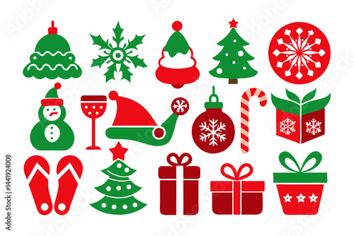 Christmas color icon set silhouette