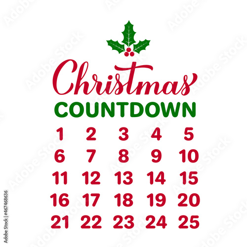 Christmas Countdown sign. Advent calendar template. Days until Christmas. Vector illustration.