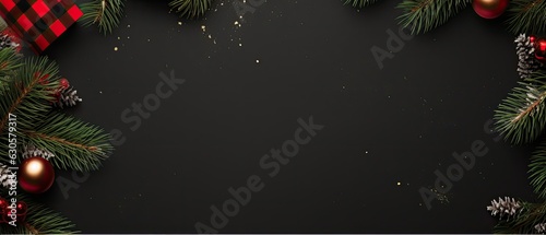 christmas decoration and celebration with tree, gift, background template illustration. empty space, copy space decoration, banner background.
