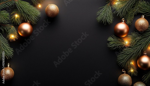 Christmas elegant decorations with elegant and sophisticated lighting and balls. Pine branches, composition for premium marketing materials