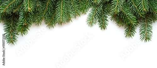 Christmas fir branches border decoration creating a festive backdrop on a white surface suitable for holiday themed designs and cards