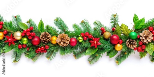 Christmas Garland PNG, Festive Holiday Decoration, White Background, High-Resolution Image Download, Christmas Wreath Clipart