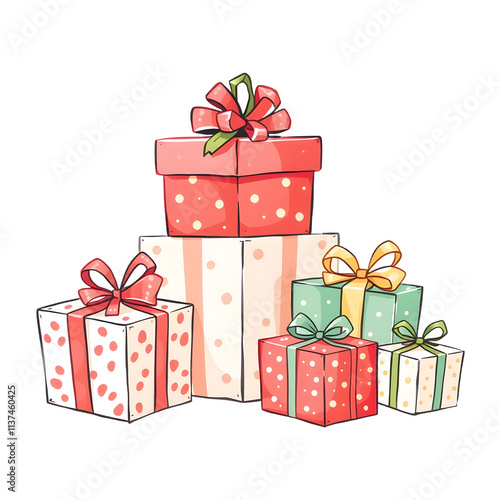 Christmas gifts illustration. png isolated background. transparent background.
