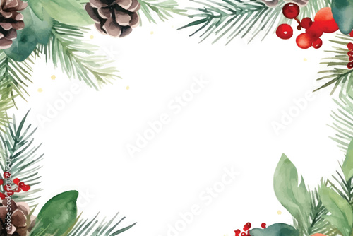 Christmas Holly Border with Red Berries and Green Leaves
