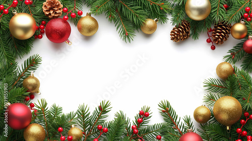 Christmas Ornament Border with Pine Branches