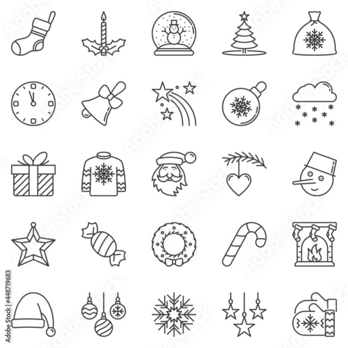 Christmas outline icons set - vector Holiday concept signs