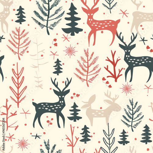 Christmas pattern featuring reindeer silhouettes and snowflakes By Generated AI