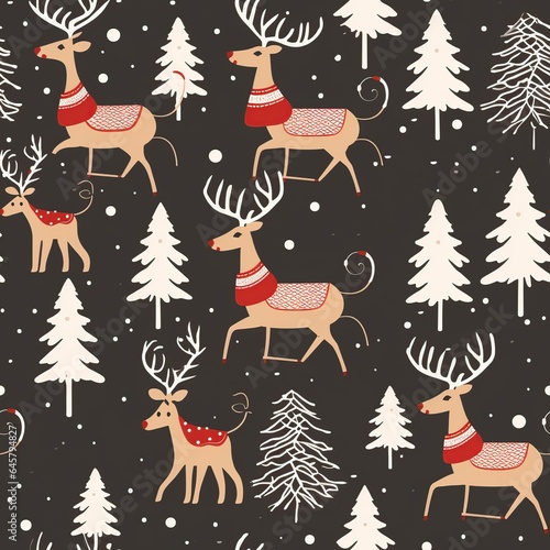 Christmas reindeer decoration, seamless pattern. AI Generated.