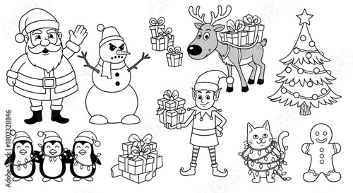 Christmas scene with Santa and friends in a festive holiday setting