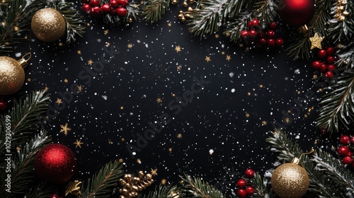 Christmas snowy background on the black